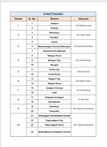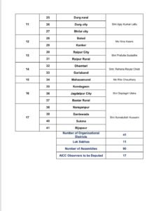 छत्तीसगढ़ में कांग्रेस के 41 संगठन जिलों के ऑब्ज़र्वर घोषित… रायपुर शहर ग्रामीण के लिए प्रफुल्ल गोडाढ़े… किस ज़िले में कौन प्रेक्षक, देखिए लिस्ट