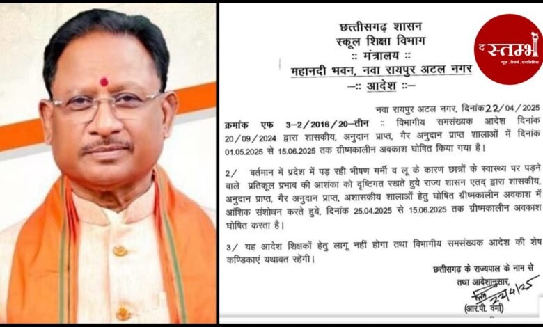 छत्तीसगढ़ के सभी सरकारी स्कूलों में शिक्षकों 25 अप्रैल से गर्मी की छुट्टियाँ घोषित कर दी गईं है। आने वाले…