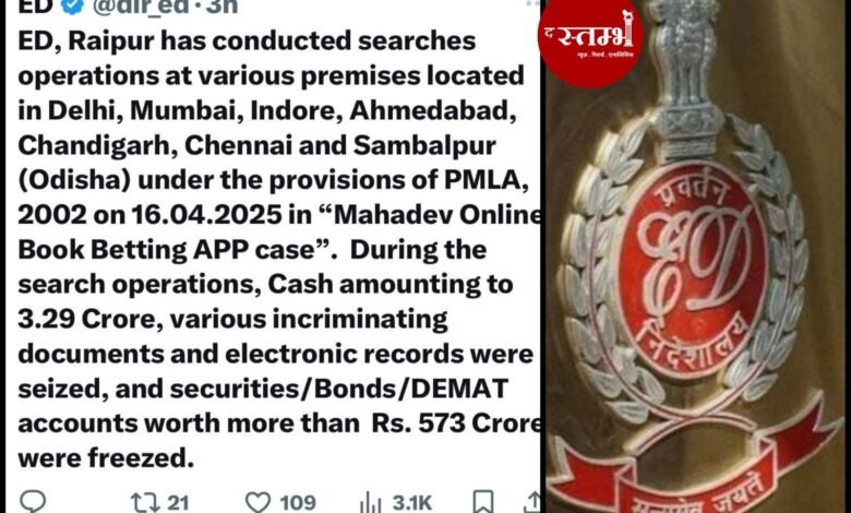Read More »केंद्रीय प्रवर्तन निदेशालय (ईडी) ने महादेव बुक आनलाइन सट्टे में इसी महीने छत्तीसगढ़ में डेढ़ दर्जन ठिकानों पर छापेमारी की…