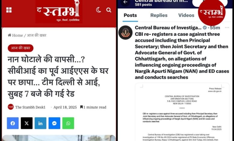 सीबीआई ने शुक्रवार को पूर्व आईएएस अनिल टुटेजा के निवास पर छापा मारा था। द स्तम्भ ने तभी बता दिया…