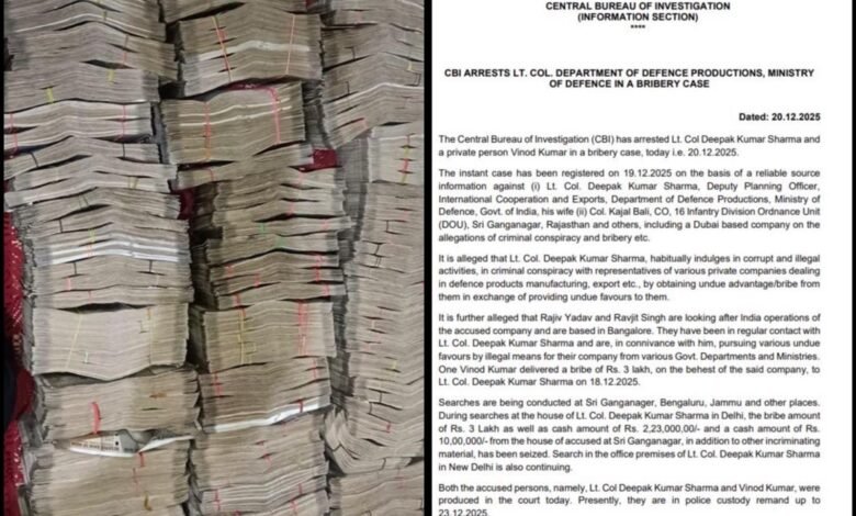 Read More »केंद्रीय जांच ब्यूरो (सीबीआई) ने आज शनिवार को 3 लाख रुपए की रिश्वत के मामले में लेफ्टिनेंट कर्नल दीपक कुमार…