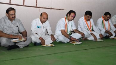 सिमगा ब्लाक के गांवों में जनसंपर्क के दौरान साथी नेताओं के साथ भोजन करते कांग्रेस प्रत्याशी विकास उपाध्याय विधानसभा चुनाव…