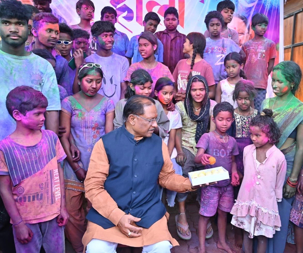 होली खेल रहे बच्चों को सीएम साय ने घर में बुलवा लिया… देखते ही देखते बच्चों के साथ रंग से सराबोर, ख़ुद खिलाई मिठाई