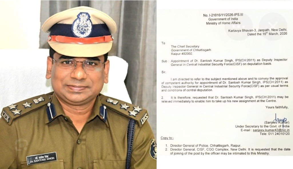 रायपुर के पूर्व एसएसपी संतोष सिंह अब होंगे सीआईएसएफ डीआईजी… डेपुटेशन के लिए जल्द हो जाएंगे रिलीव