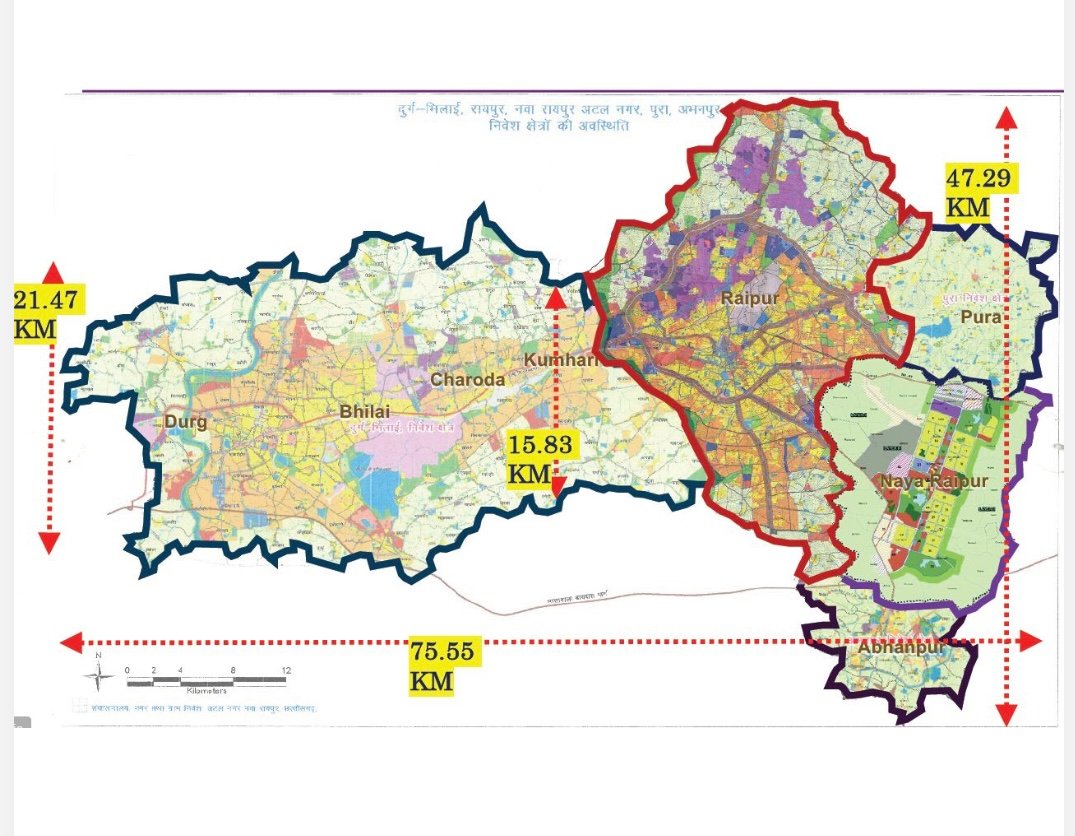 रायपुर और आसपास के लोगों के लिए अहम खबर ये है कि सरकार ने स्टेट कैपिटल के रूप में रायपुर कैपिटल रीजन का नक्शा तैयार कर लिया है। छत्तीसगढ़ के रायपुर स्टेट कैपिटल रीजन में नया रायपुर, रायपुर, कुम्हारी, चरौदा, भिलाई और दुर्ग जिले के बड़े हिस्से को शामिल किया गया है। इससे रायपुर कैपिटल का एरिया करीब 6 हजार वर्क किमी का हो रहा है। यही नहीं, इस पूरे एरिया की जनसंख्या लगभग एक करोड़ आंकी गई है। रायपुर कैपिटल रीजन का सरकार ने सेटअप तैयार कर लिया है। सीएम विष्णुदेव साय इसके चेयरमैन होंगे। रायपुर कैपिटल रीजन के लिए करीब 250 अफसर-कर्मचारियों का सेटअप तैयार कर मंजूरी के लिए वित्त विभाग को भेजा गया है। माना जा रहा है कि 1 नवंबर या उससे पहले रायपुर कैपिटल रीजन यानी रायपुर राजधानी क्षेत्र अस्तित्व में आ जाएगा।
