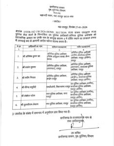Police Postings : रायपुर ग्रामीण के लिए आधा दर्जन अफसर भेजे गए… मित्तल रायपुर ग्रामीण के एएसपी क्राइम, देखिए आदेश